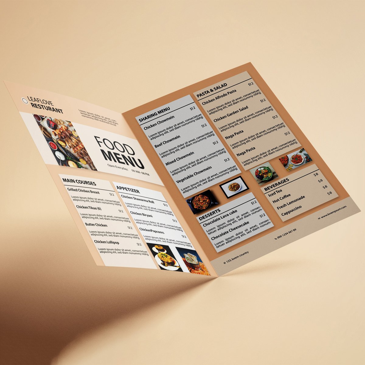 Minimalist Bi-Fold Restaurant Menu Template