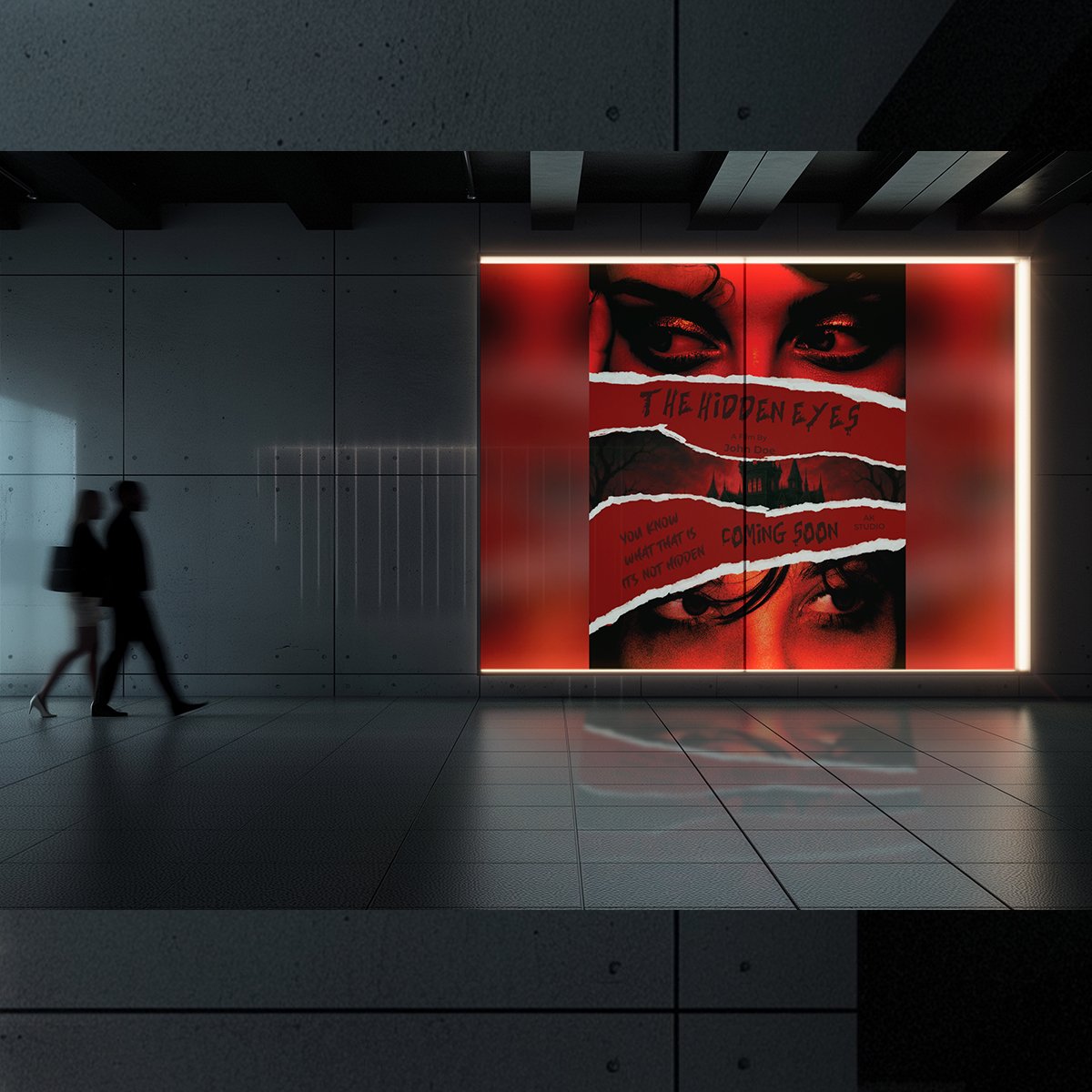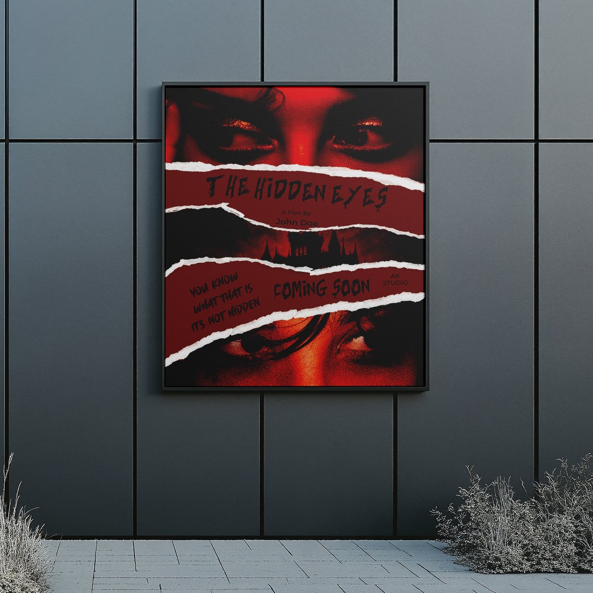 Captivate your audience with the chilling ‘The Hidden Eyes’ movie poster design. This high-impact template utilizes a unique torn-paper visual effect to reveal a mysterious gothic mansion framed by haunting, intense close-ups of eyes.